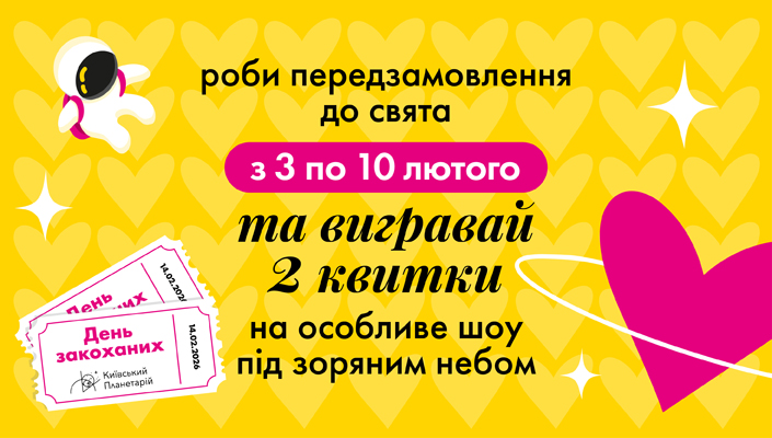 Ми розіграємо 2 квитки на особливе шоу під зоряним небом, яке відбудеться лише 14 лютого у Київському планетарії ✨