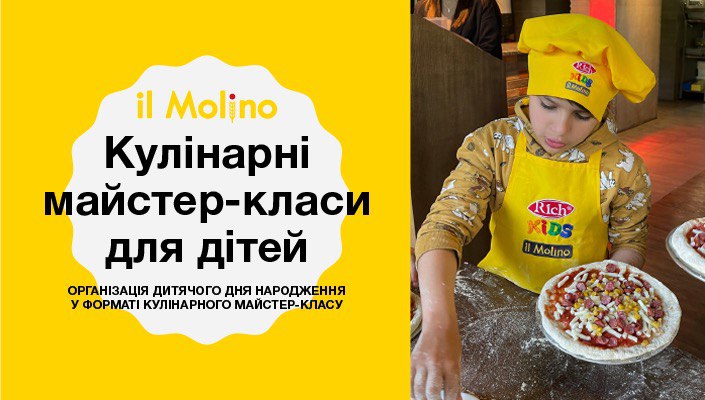 Сім‘я піцерій il Molino підготували для вас та ваших дітей спеціальні програми для святкування дитячого дня народження у форматі кулінарного майстер-класу. У кожний пакет святкування входить: