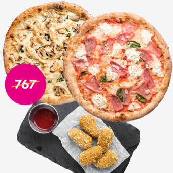 - набір «Туто Бене» з двох піц: «Кватро Формаджі» з чотирма видами сиру, «Сильвії» з пармською шинкою та в'яленими томатами + «Кока-кола» 1 л;